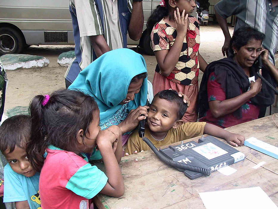 Les équipes de TSF se sont déplacées dans les refuges et les lieux de vies communautaires (écoles, mosquées, mairie…) dans les districts côtiers de Kalutara, Galle, Matara, Hambantota et Ampara pour permettre à la population de contacter leurs proches au Sri Lanka ou à l’étranger. L’information sur le service proposé par TSF était affiché et l’utilisation de mégaphones a été quotidienne – une partie de la population restant sur le lieu de leur domicile pour éviter le pillage des affaires personnelles qu’ils avaient pu récupérer après le passage du tsunami.
