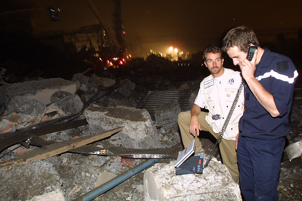 Five days later, on 27th September, the Civil Security body called upon TSF. The rescue teams were working within the plant’s safety zone, and were unable to communicate with the outside. For three days, a TSF logistician provided pictures and situation reports for the Civil Security body to the Interior Minister. This operation was praised by Lionel Jospin, the Prime Minister at the time, and Philippe Douste-Blazy, the Mayor of Toulouse.