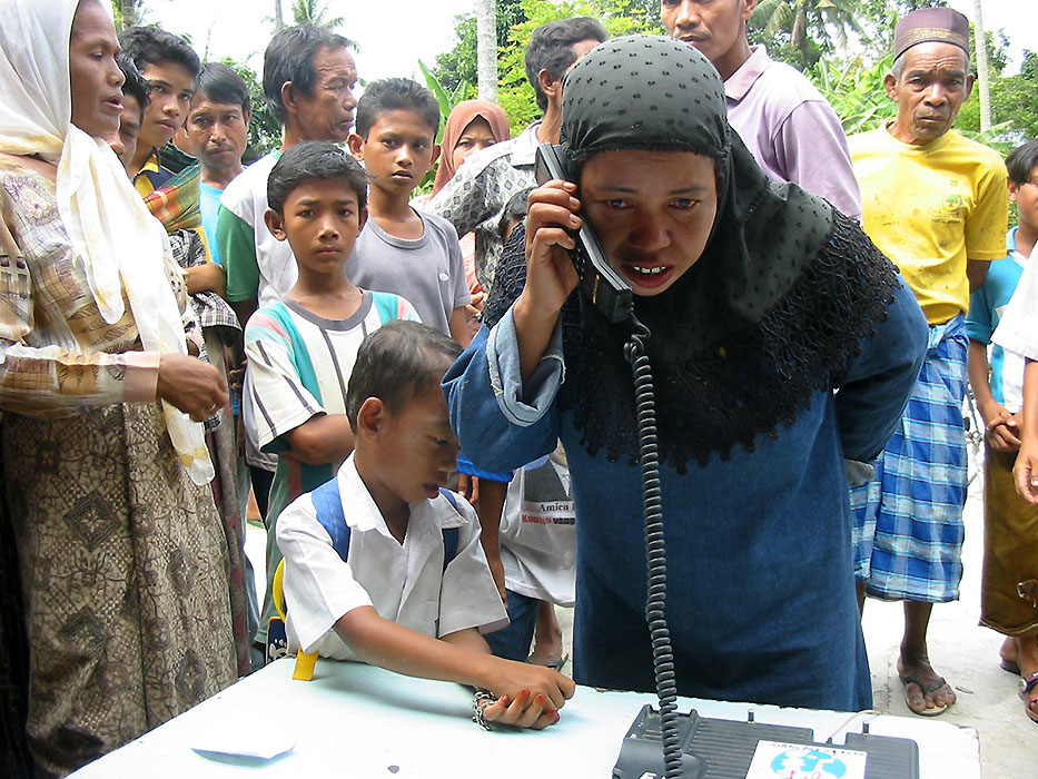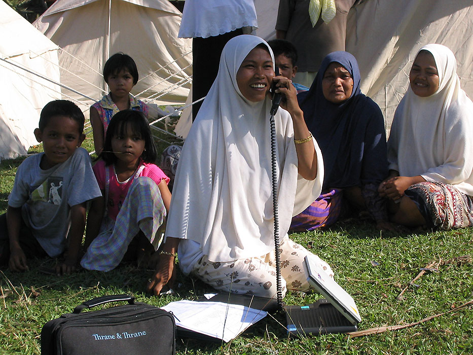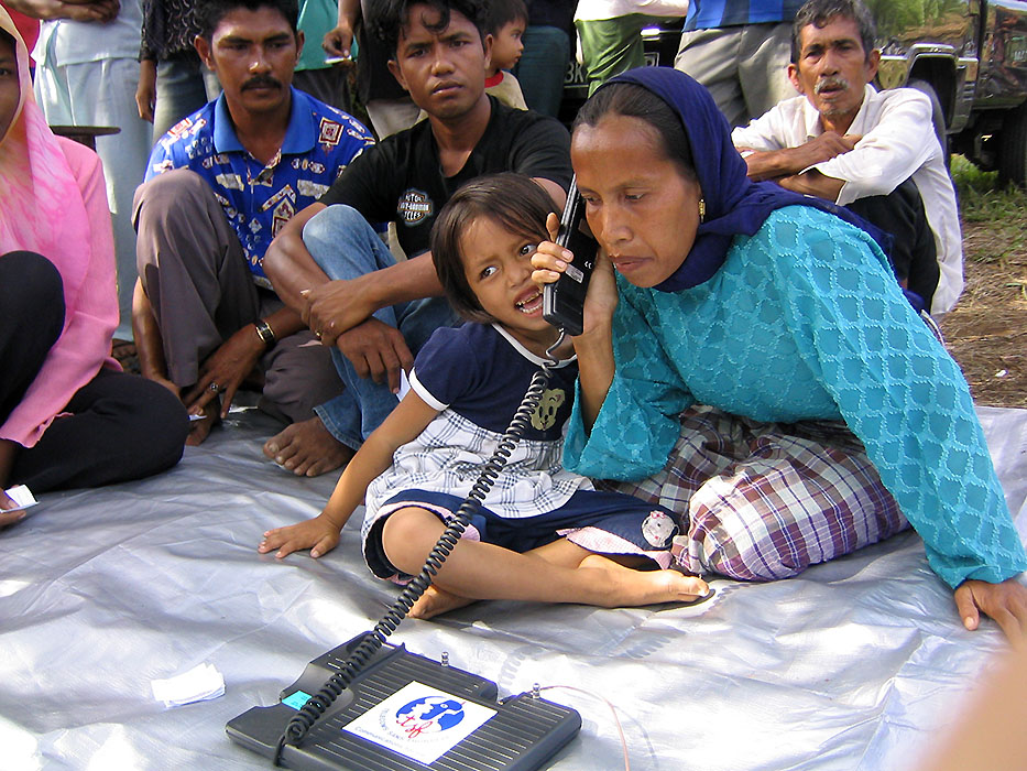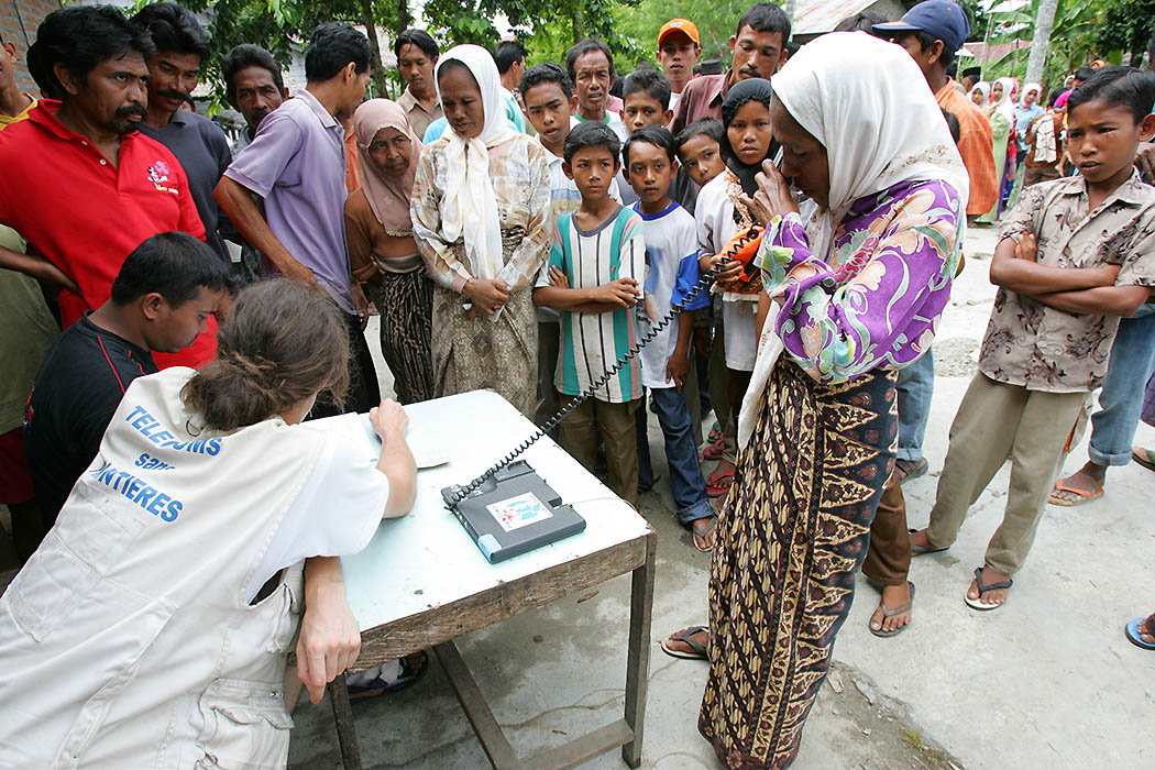 Mobilised in Thailand and Sri Lanka, upon obtaining authorizations from the Indonesian government, under the financing of the European Civil Protection and Humanitarian Aid Operations (ECHO), a team deployed to the Aceh region to provide means of communication. The provisions of satellite telecommunications services for relief organizations and for the affected population was a priority.
