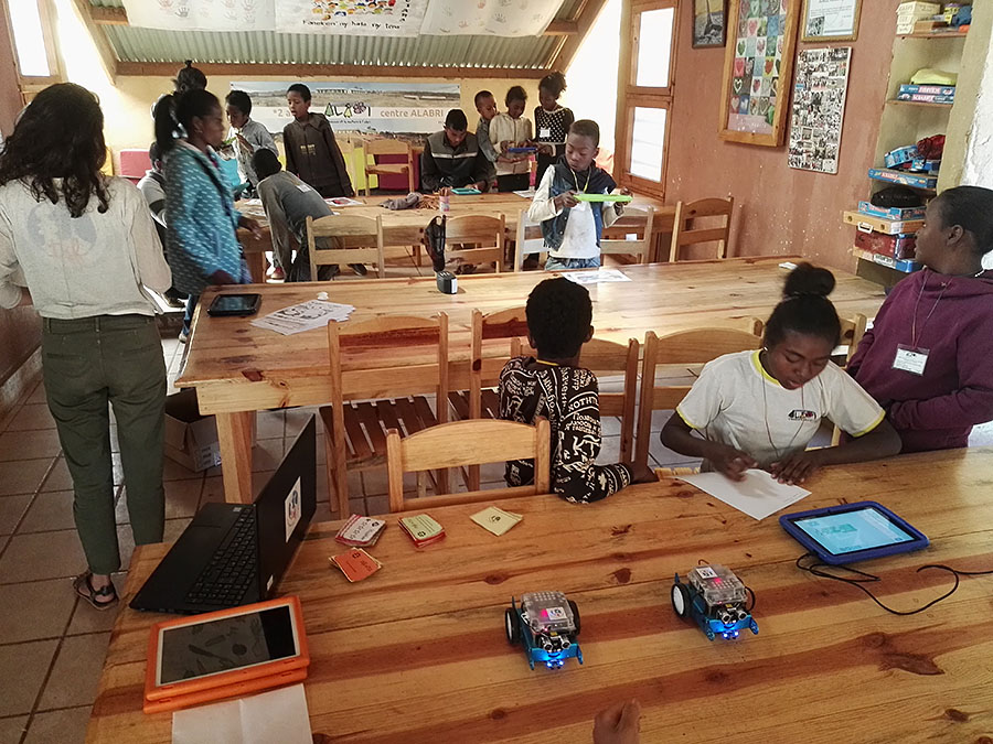 On Saturday afternoons, motivated young people discover digital technology and algorithms in a fun way with Scratch, the mBot robot, and more.
