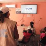We installed the screen in the dining room and it is turned on during breakfast, lunch and dinner. There is a coordinator who turns it on everyday and when migrants are there in the dining room, they are attentive to what is shared on the screen. Thank you very much."